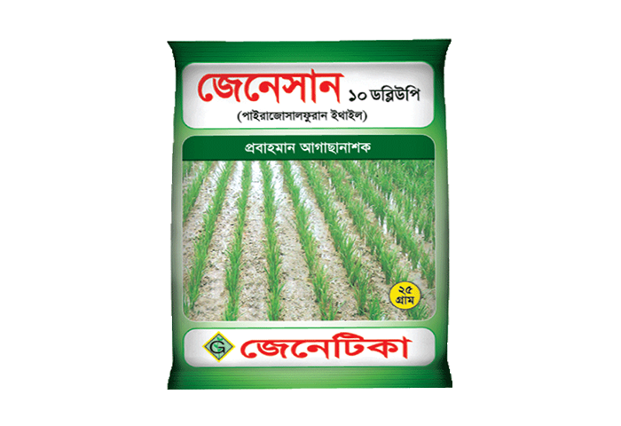 Genesun 10 WP is prepared with the active ingredient known as “Pyrazosulfuron-ethyl”. Introduce by Nissan Chemical Industries Ltd.  in 1990. Its act as selected herbicide to control Broad-leaf weeds and Sedges. Its work very successfully when apply within 10-15 DAT (after weed seed emergence).